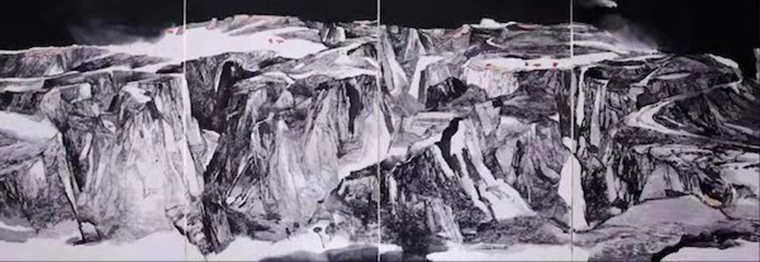 參展陣容中,作為陳鈺銘工作室助教的李連志、張力弓先生,也是耕藝已久、早聞聲名。本次畫展,連志、力弓的新作,也屬大幅精制,猶有“鶴立雞群”之貌。看連志畫兒較多,其藝道功夫,江湖早有傳說,根本在于其有想法、耐琢磨,作品尋味、境界不俗。畫得好,題材也廣、形式又多,潛力可挖,未來可期。