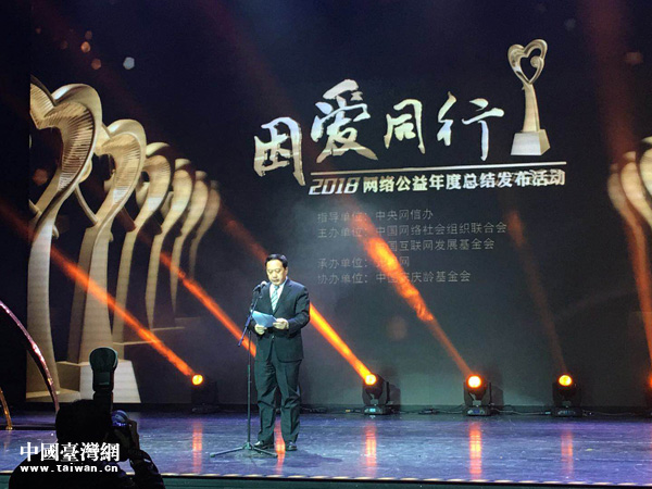 中國臺灣網1月10日訊(記者房琳琳) 1月10日下午,“因愛同行”2018網絡公益年度總結發布活動在京舉辦,集中發布了“年度項目”“年度創新項目”“年度優秀傳播項目”3大類共45個網絡公益年度優秀典型。活動由中央網信辦指導,中國網絡社會組織聯合會、中國互聯網發展基金會主辦,光明網承辦,中國宋慶齡基金會協辦。全國人大社會建設委員會副主任委員、中國網絡社會組織聯合會會長任賢良出席活動并致辭。中國互聯網發展基金會理事長馬利、中國宋慶齡基金會副主席井頓泉等相關領導出席,有關中央重點新聞網站、互聯網企業、公益機構和獲獎單位代表參加活動。