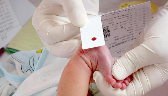 采集新生兒足跟血用于遺傳性耳聾基因篩查(受訪者供圖)