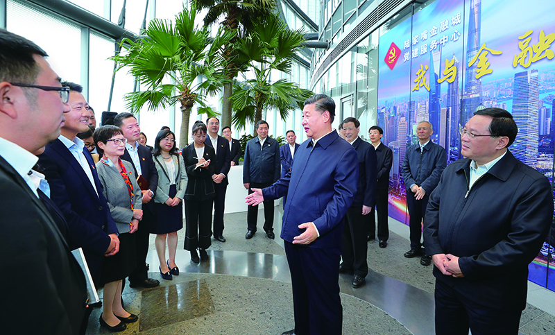2018年11月6日至7日,中共中央總書記、國(guó)家主席、中央軍委主席習(xí)近平在上海考察。這是6日上午,習(xí)近平在上海中心大廈22層的陸家嘴金融城黨建服務(wù)中心,同正在聯(lián)合開展主題黨日活動(dòng)的企業(yè)黨員親切交談。 新華社記者 謝環(huán)馳/攝
