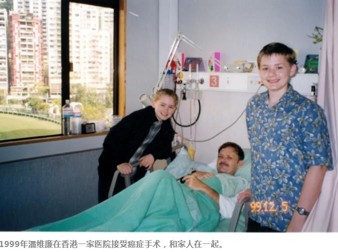 1999年潘維廉在香港一家醫院接受癌癥手術,和家人在一起。