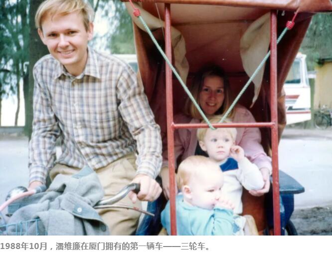 1988年10月,潘維廉在廈門擁有的第一輛車——三輪車。