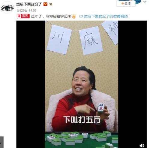 來四川成都走一走,除了聞到臘味兒香,應該還能看到很多人家的麻將桌。作為春節的必備娛樂項目,親朋好友一相聚,不打個通宵怎么行?“寧挨千刀剮,不胡第一把,幺雞二條,不打要遭,八萬九萬,不打輸完,有四不打一,二五先打八……”最近,一位四川奶奶就用Rap向全國網友傳授了一段打麻將秘訣。