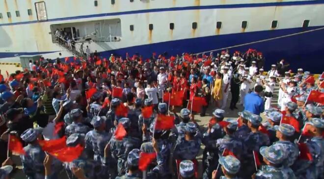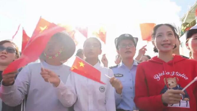 身處祖國最南端的人們,被旋律中高昂的熱情打動,心底對國家和民族的歸屬感、認同感和自豪感油然而生。他們從碼頭的各個角落走來,聚在一起,揮舞著鮮艷的五星紅旗,加入演唱。