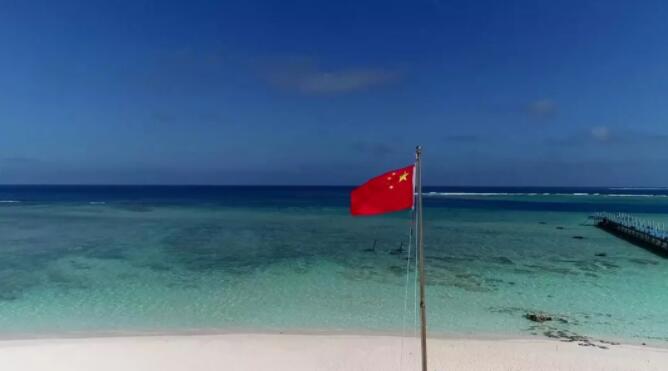 △鮮艷的五星紅旗在三沙島礁飄揚