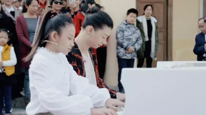 歌手霍尊的出現(xiàn)掀起了新一輪現(xiàn)場高潮。他與11歲“鋼琴女孩”謝雨珊的四手連彈,將表達海峽兩岸骨肉親情的《鼓浪嶼之波》融入《我和我的祖國》旋律之中。