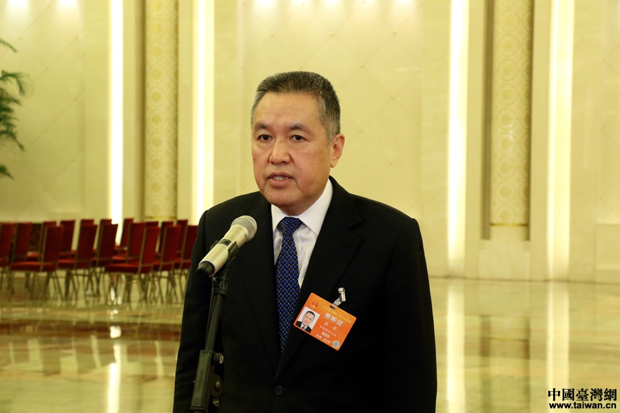 中共中央臺辦、國務院臺辦主任劉結一在“部長通道”接受采訪。(中國臺灣網 尹賽楠 攝)