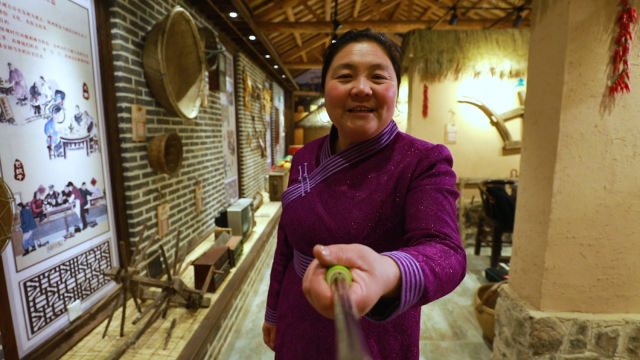 趙會杰在村里的民俗博物館自拍錄視頻,展示保留下來的老物件。新華社發(視頻截圖)