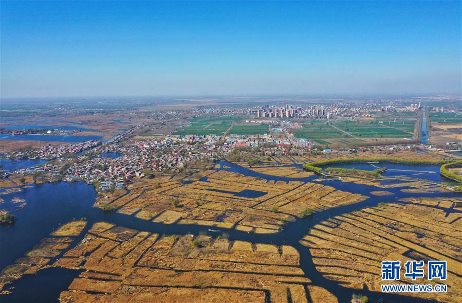 這是3月31日無人機拍攝的雄安新區白洋淀。新華社記者 邢廣利 攝