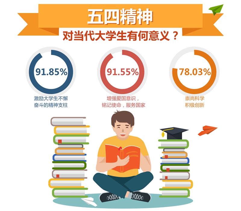 漫步今天的北大校園,我們仿佛又聽到穿越百年歷史時空的聲音。未名湖畔樹木蔥郁,博雅塔旁書香沁人,攜帶書籍的莘莘學子在校園內急步而行。正如北京大學學生張棟杰所說:“青春是用寶貴的年華去做一件祖國需要的事,拼盡全力、毫無保留”。91.85%的受訪大學生認為五四精神“是激勵大學生不懈奮斗的精神支柱”,91.55%的受訪大學生認為五四精神“能增強愛國意識,銘記使命,服務國家”。他們都認為,這個時代可以有小我,但心中一定要有我們的祖國,五四精神永不過時。