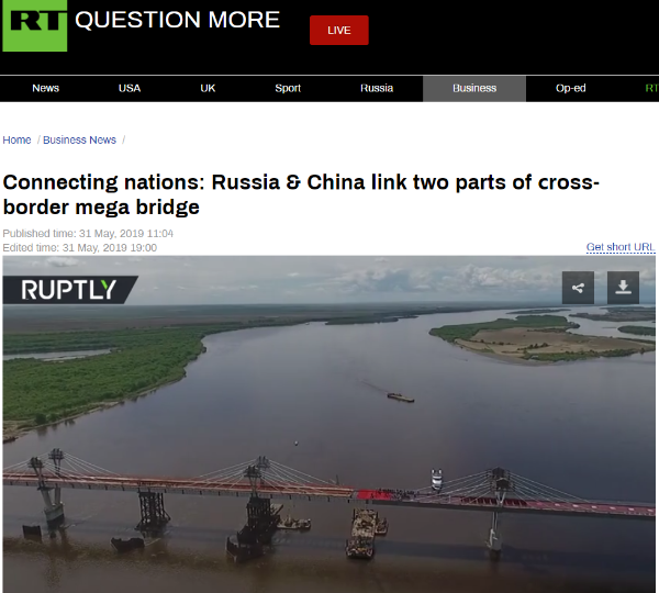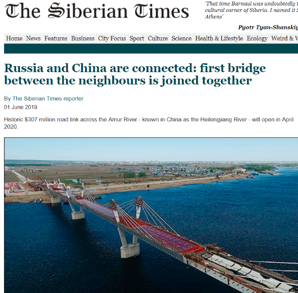 另據(jù)俄羅斯西伯利亞時報網(wǎng)站6月1日報道,一座具有歷史意義的俄中公路橋將于2020年4月正式開通。