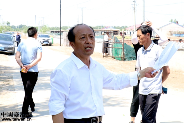 烏蘭花村第一書記王學范向采訪團講述脫貧故事。(中國臺灣網(wǎng) 尹賽楠 攝)