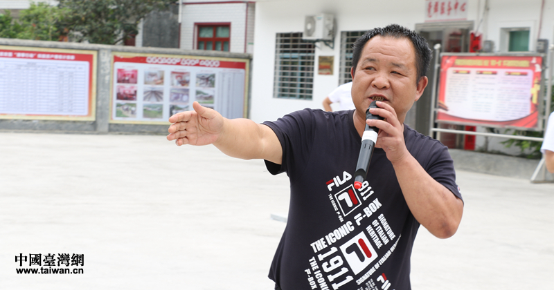 三村村第一書記任林介紹三村村扶貧情況。(中國臺灣網(wǎng) 王莉婷 攝)