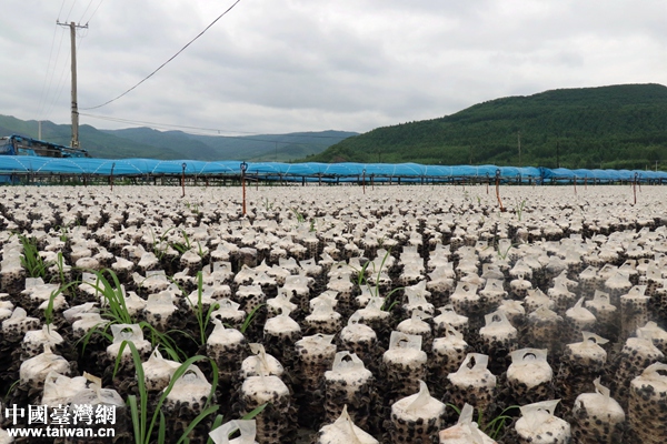 一眼望不到邊的黑木耳種植菌包。(中國臺灣網 尹賽楠 攝)