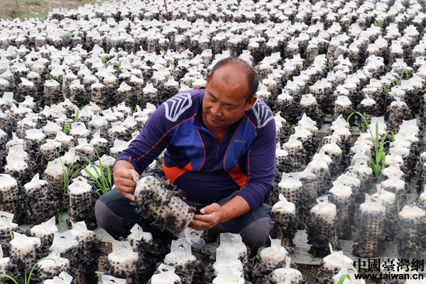 黑木耳種植大戶張守禮悉心照看每一個菌包。(中國臺灣網 尹賽楠 攝)