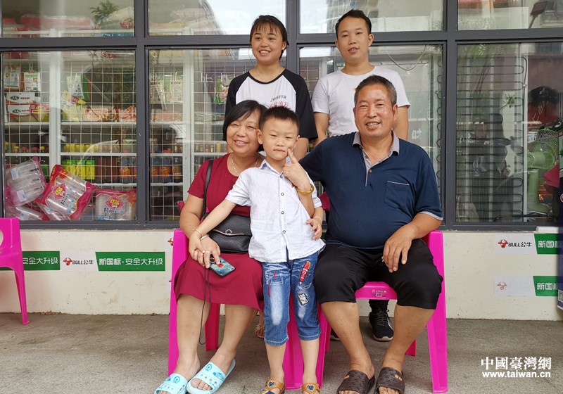 在自家開的超市門前,安景緒一家人合影留念。(中國臺灣網 王莉婷 攝)