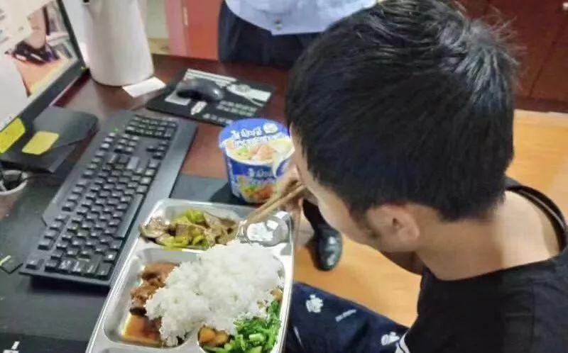 中隊(duì)“住”著個小伙,很快同事們都知道了,食堂廚師特意給他做了一頓飯,胡豪杰還給他買來一桶方便面。
