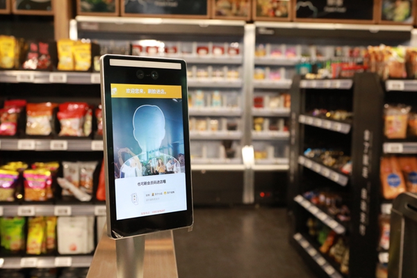 蘇寧首家全場景應用全數字化視覺無人店,通過全球最新的無人門店科技,實現了消費者可以即拿即走,同步支付。張芯蕊 攝