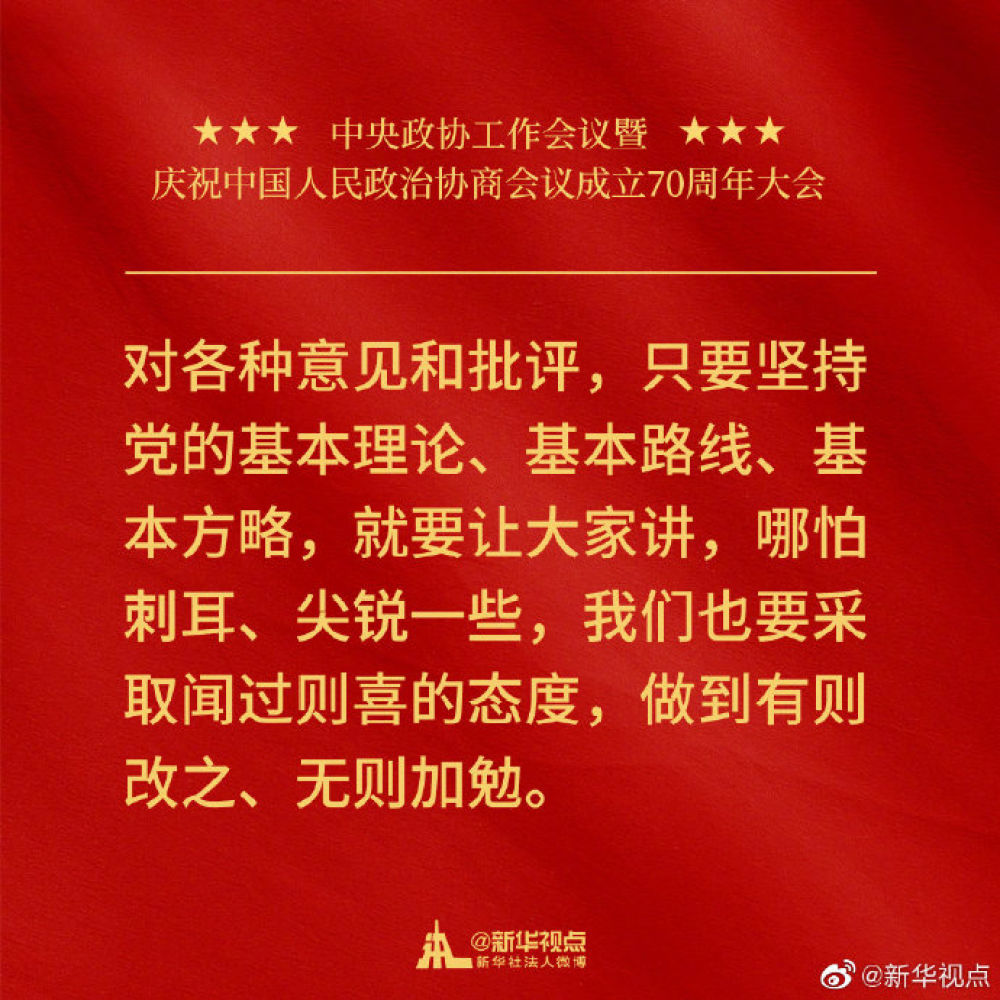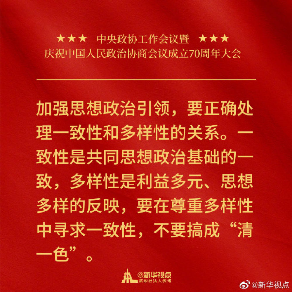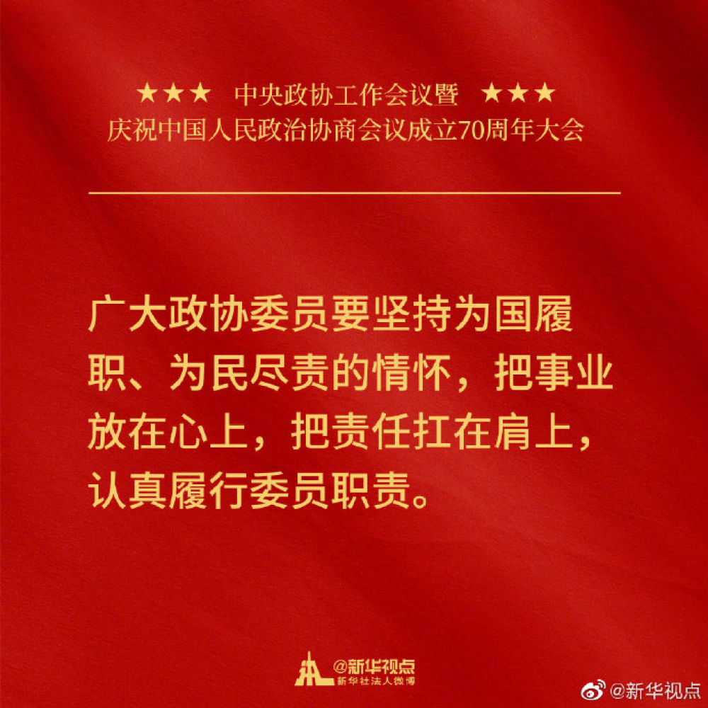 金句來了!習近平在中央政協工作會議暨慶祝中國人民政治協商會議成立70周年大會上的講話金句!