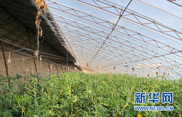 圖為十二吐鄉(xiāng)達(dá)康產(chǎn)業(yè)園區(qū)大棚內(nèi)種植的西紅柿。新華網(wǎng)汪亞/攝
