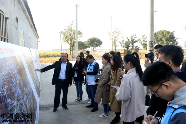 沈橋村黨委副書(shū)記的戴利偉向采訪團(tuán)介紹村內(nèi)整治情況。(中國(guó)臺(tái)灣網(wǎng) 尹賽楠 攝)