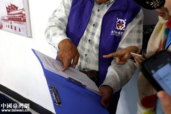 66歲的沈橋村村民王金坤向記者展示志愿者名單。(中國(guó)臺(tái)灣網(wǎng) 尹賽楠 攝)