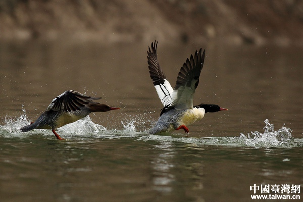 赤紅的嘴巴,飄逸的長發,亮翅露出兩道杠,號稱“會飛的中隊長”,它們就是被譽為“國鴨”的明星——中華秋沙鴨。