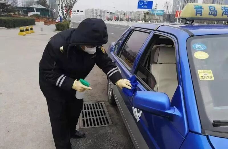 收到青島市交通運輸局印發的《致全市出租汽車行業從業人員的公開信》后,各企業紛紛在駐地設立“疫情防護消毒點”。交運溫馨的士公司、海博出租公司、鼎利出租公司更是在路邊設立“疫情防護消毒點”,主動為全市出租車免費消毒;海博出租公司、利群出租公司等多家企業組織管理人員前往火車站、機場等車輛相對密集的站點為車輛進行消毒;曹操專車青島公司主動為兄弟企業聯系購買防護用品,幫助解決燃眉之急;滴滴出行青島公司在長沙路49號滴滴出行官方司機招募點免費向網約車司機派發口罩、進行車輛消毒;相偉公司全體駕駛員決定購買酒精、噴壺,為進入青島火車站和火車北站的巡游出租車免費消毒。