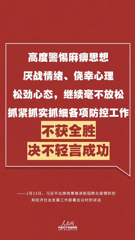 編者按:2月23日,中共中央總書記、國家主席、中央軍委主席習(xí)近平出席統(tǒng)籌推進(jìn)新冠肺炎疫情防控和經(jīng)濟(jì)社會(huì)發(fā)展工作部署會(huì)議并發(fā)表重要講話。會(huì)上,習(xí)近平總書記全面總結(jié)了新冠肺炎疫情防控工作,深刻分析了當(dāng)前疫情形勢(shì)和對(duì)經(jīng)濟(jì)社會(huì)發(fā)展影響,提出了加強(qiáng)黨的領(lǐng)導(dǎo)、統(tǒng)籌推進(jìn)疫情防控和經(jīng)濟(jì)社會(huì)發(fā)展工作的重點(diǎn)任務(wù)和重大舉措。