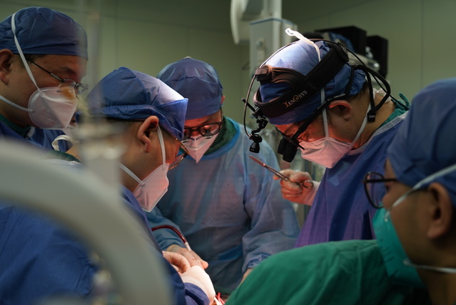 隨即,協和醫院以心臟大血管外科主任董念國教授、夏家紅教授為首的專家團隊,穿著厚厚的防護服施行心臟移植手術。終于,晚上9點27分,這顆一路狂奔的心臟順利安放至11歲女孩欣欣(化名)的胸腔中,重新有力地跳動起來。