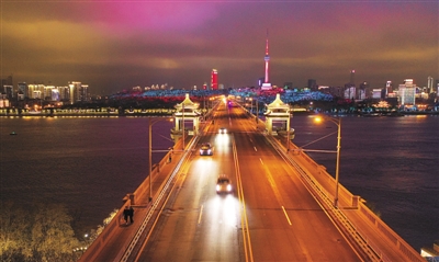 3月26日晚,行駛在武漢長(zhǎng)江大橋上的車輛。本報(bào)武漢一線報(bào)道組記者 季春紅攝/光明圖片