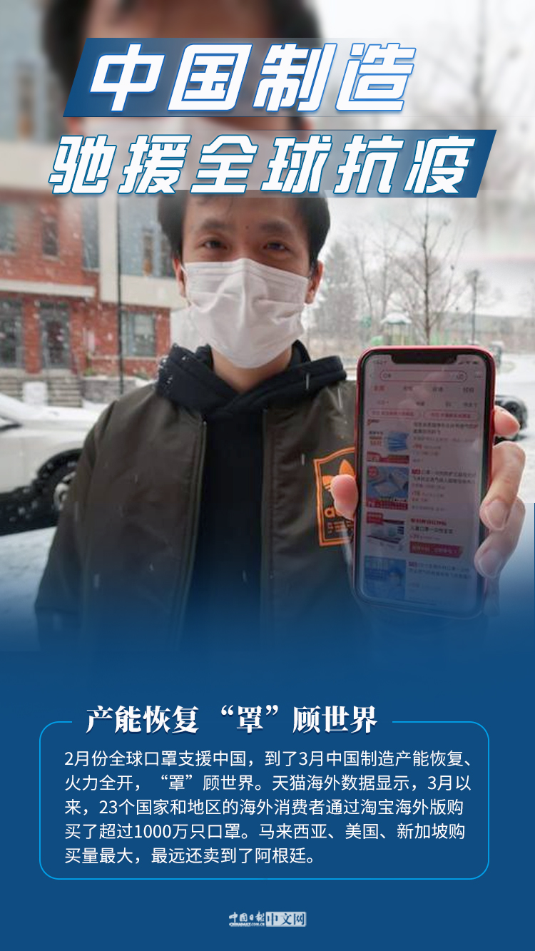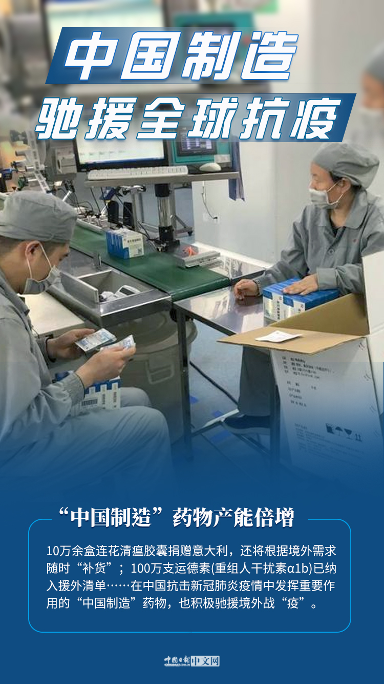 口罩、檢測試劑盒、呼吸機、藥物……這些日常防護、確診和救治患者的防疫物資,正在從中國工廠的生產(chǎn)線走向世界。生產(chǎn)線開足馬力、工人實行三班倒……中國企業(yè)復產(chǎn)復工經(jīng)濟社會恢復發(fā)展,繼續(xù)為國際社會合作應(yīng)對疫情提供有力支撐。