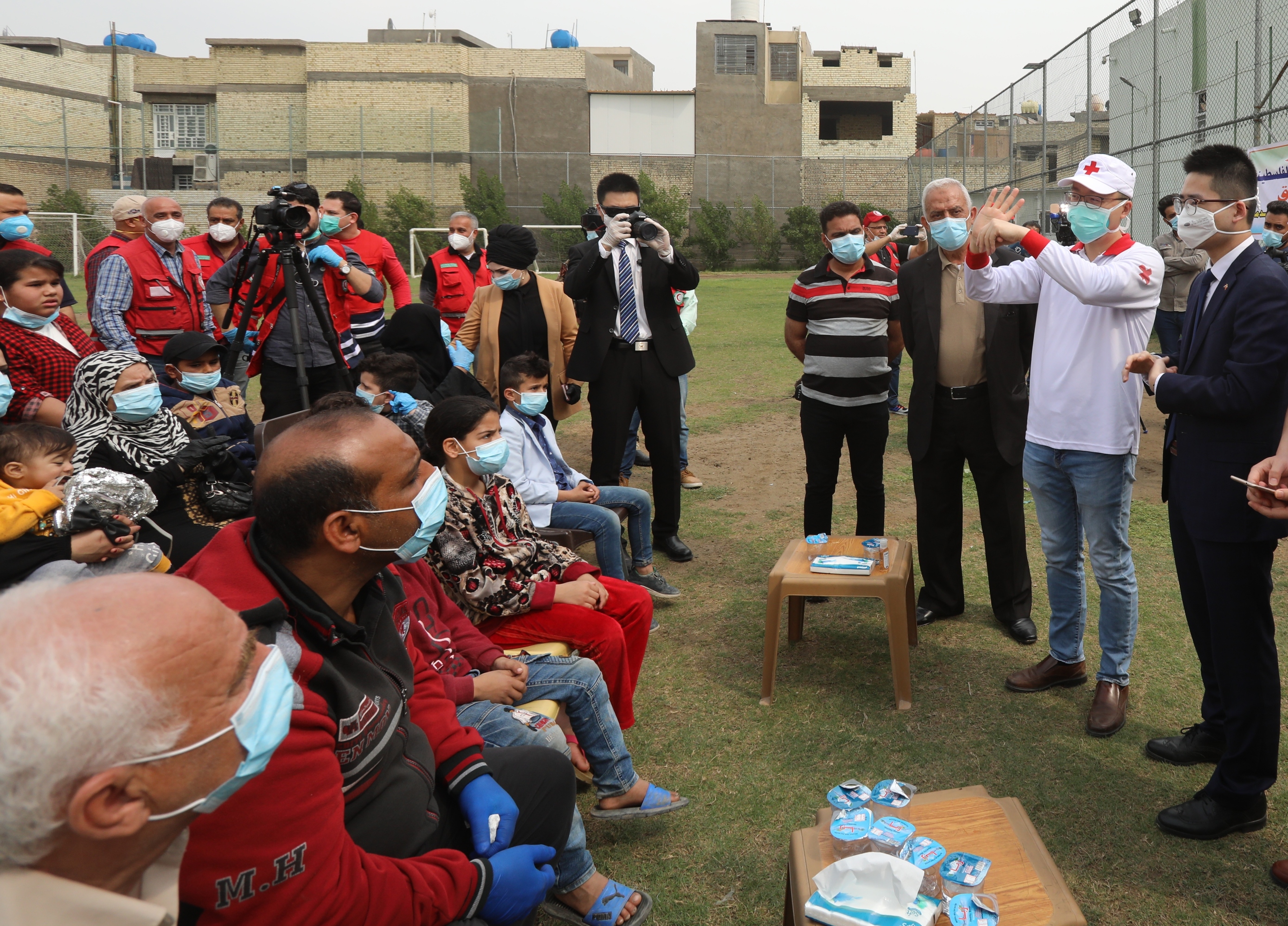 3月16日,在伊拉克巴格達,中國醫療專家展示科學的洗手方法。中國專家組當日與巴格達醫學城代表簽署了防疫物資交接證書。中國紅十字會總會捐贈的設備將有助于伊拉克大大提升新冠病毒檢測能力,實現早檢測、早隔離、早診斷、早治療。新華社發(哈利勒·達伍德攝)