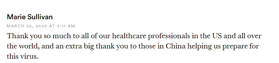在STAT發表了這條新聞后,有網友評論稱,“非常感謝在美國和世界各地的所有醫療專業人員,也非常感謝在中國為我們提供幫助為應對病毒做好準備”。病毒無國界,中國醫生正在用自己的實際行動為國際社會抗擊疫情注入寶貴的信心。