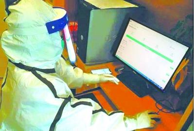 武漢大學校醫院胡晶醫師使用科大訊飛開發的新冠肺炎康復智能護航系統處理醫務工作