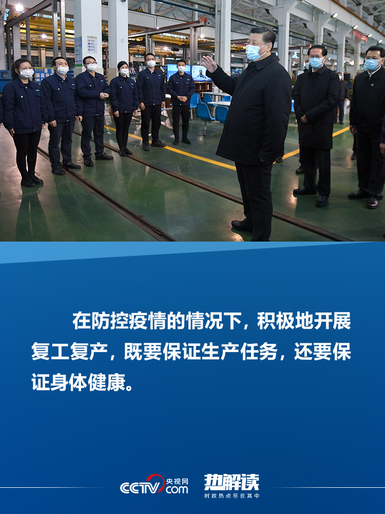 “加強疫情防控這根弦不能松,經濟社會發展各項工作要抓緊!边@一統籌兼顧之謀在習近平的戰“疫”部署中貫穿始終。29日下午,習近平來到寧波北侖大碶高端汽配模具園區再次叮囑大家,“在防控疫情的情況下,積極地開展復工復產,既要保證生產任務,還要保證身體健康!