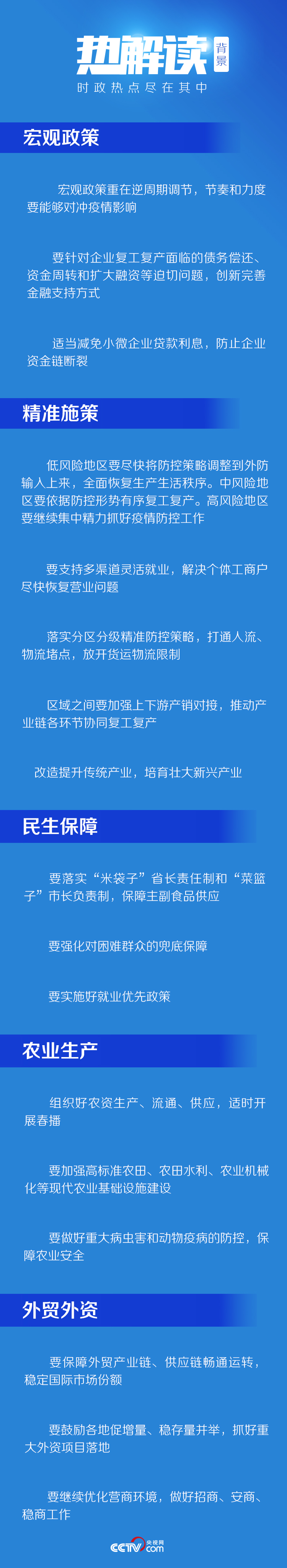 回顧習近平的戰“疫”部署,10余次重要會議、多次重要指示和講話。在部署疫情防控的同時,關于復工復產的安排周密詳盡,有條不紊。打好疫情防控阻擊戰同時,也為打贏另一場戰役提供了根本遵循。