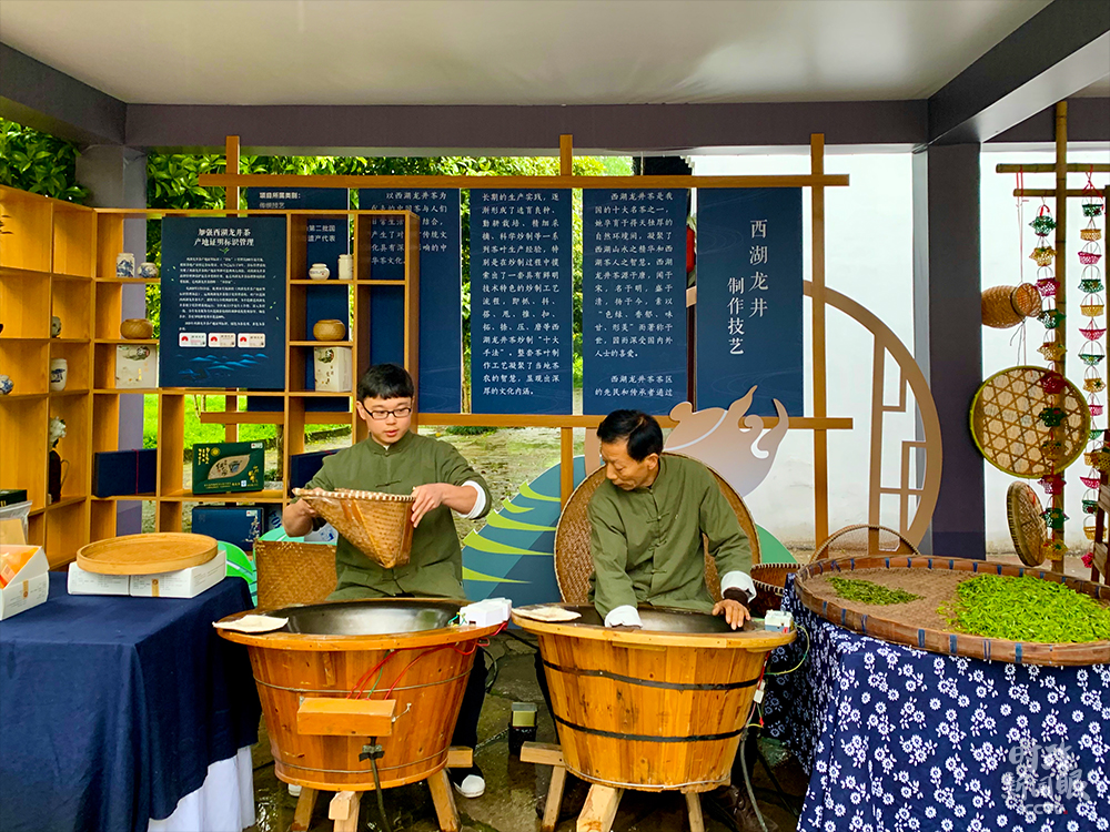 △西湖龍井以“色綠、香郁、味甘、形美”著稱于世,這是制作技藝展示區。(總臺央視記者段德文拍攝)