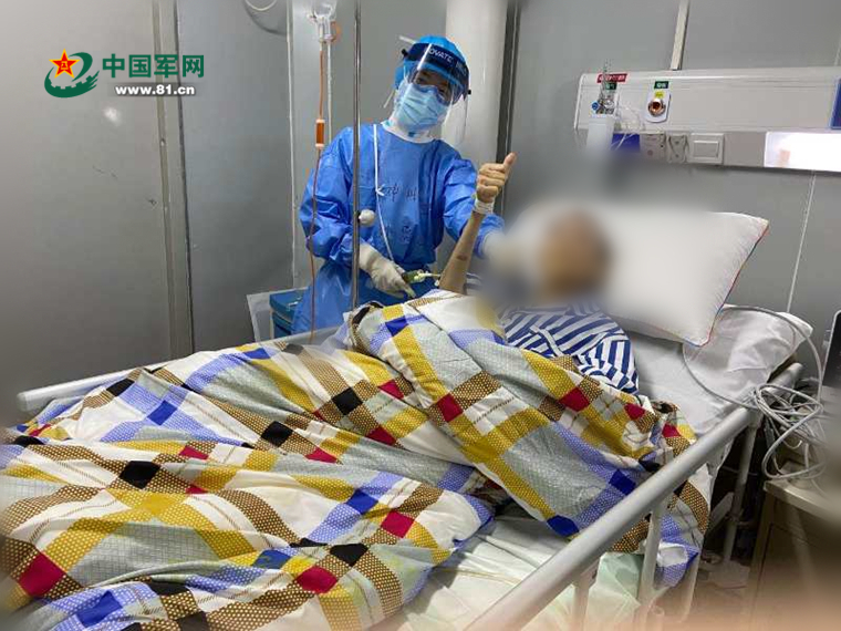 就要出院了,劉奶奶輕輕按了一下鈴,這次的訴求是和醫護合個影。照片上,劉奶奶努力舉起細細的胳膊,向身邊的醫護伸出大拇指,眼神里滿是幸福溫暖。