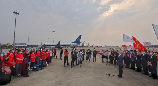 4月8日下午,廣東支援湖北醫療隊第二批重癥患者救治醫療隊57名隊員完成使命,從武漢乘專機順利抵粵。