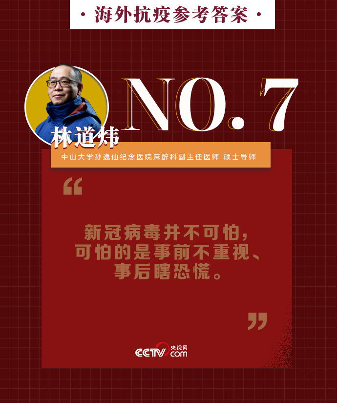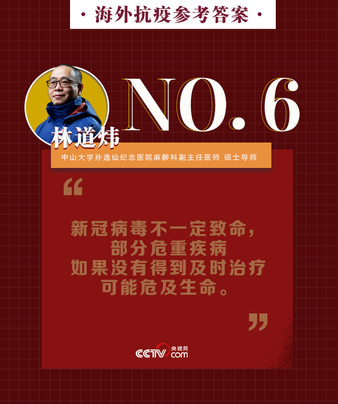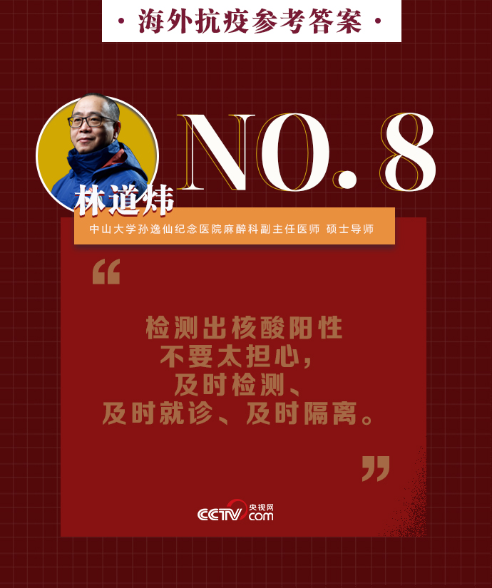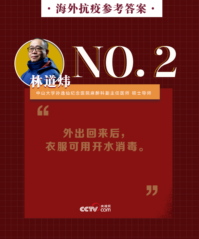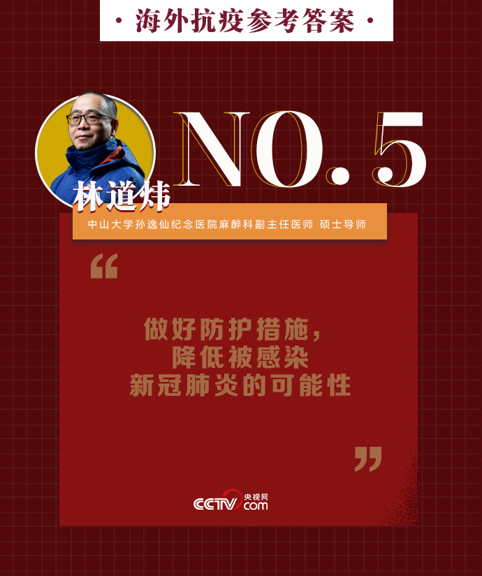 央視網(wǎng)消息:新冠肺炎疫情在全球持續(xù)暴發(fā),海外同胞如何做好基本防護、保證自身安全?出現(xiàn)焦慮緊張的負面情緒該如何緩解?中山大學孫逸仙紀念醫(yī)院麻醉科副主任醫(yī)師、碩士導師林道煒送上硬核攻略:戴口罩、注意手衛(wèi)生、減少與人接觸。做好這些,新冠病毒不可怕。