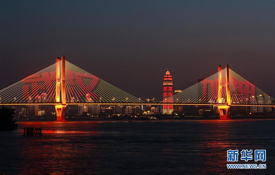 4月12日在武漢市武昌區江灘拍攝的長江二橋夜景。 武漢逐漸“重啟”,長江兩岸的夜景依然華美,過去兩個多月“沉睡”的城市正在復蘇。 新華社發(趙軍 攝)