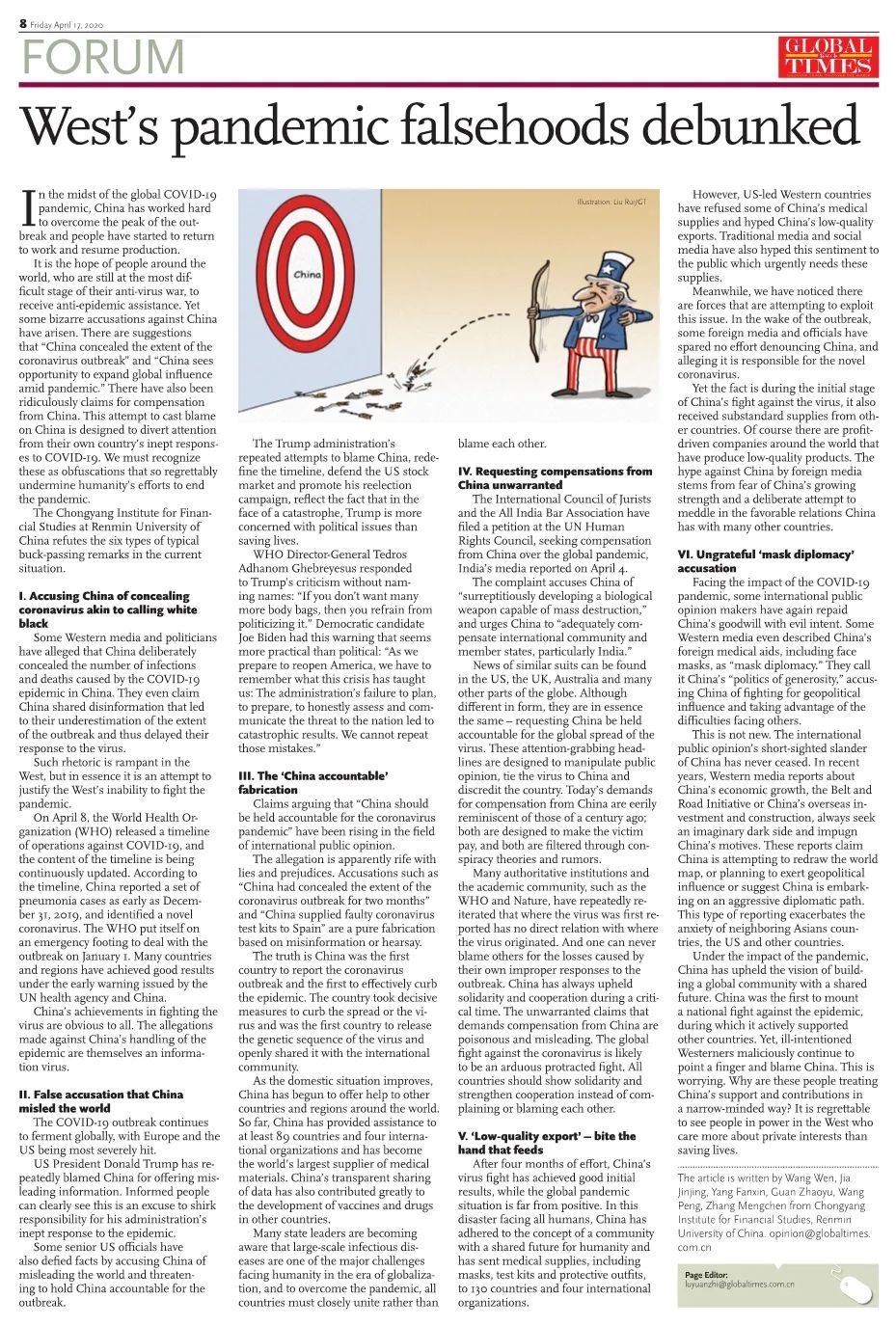 批駁八類抹黑中國“抗疫”的典型國際論調基礎上,針對當前形勢下出現的六類典型的“甩鍋中國”言論做了分析和批駁。