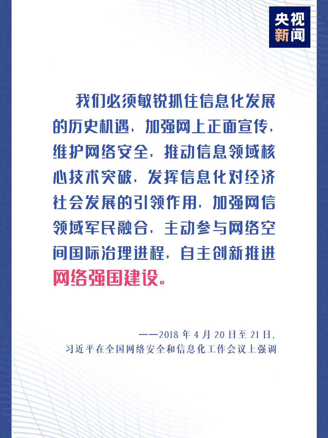 2014年2月27日,中央網絡安全和信息化領導小組第一次會議召開時,習近平總書記強調,網絡安全和信息化是事關國家安全和國家發展、事關廣大人民群眾工作生活的重大戰略問題,要從國際國內大勢出發,總體布局,統籌各方,創新發展,努力把我國建設成為網絡強國。