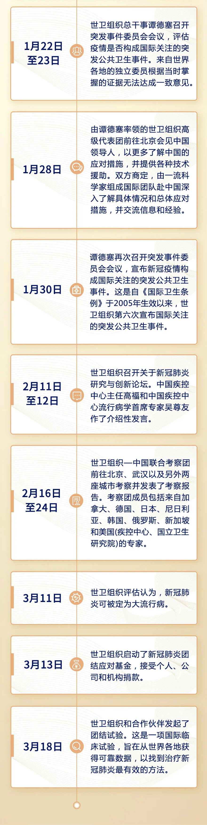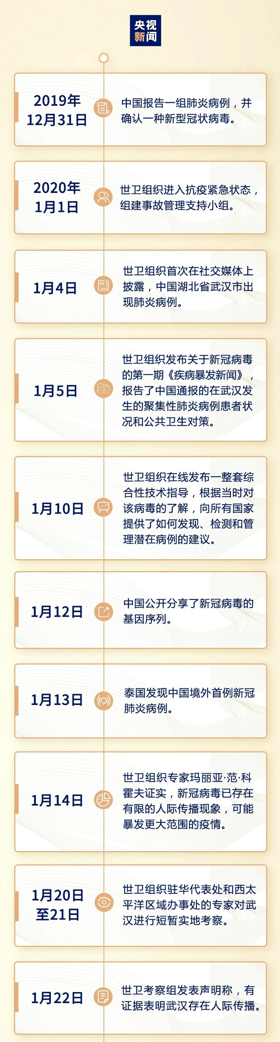 事實究竟如何?根據世衛組織近日發布的抗疫時間線,世衛組織從2020年1月1日起即進入抗疫緊急狀態,并多次發布警告,建議各國采取措施積極應對。