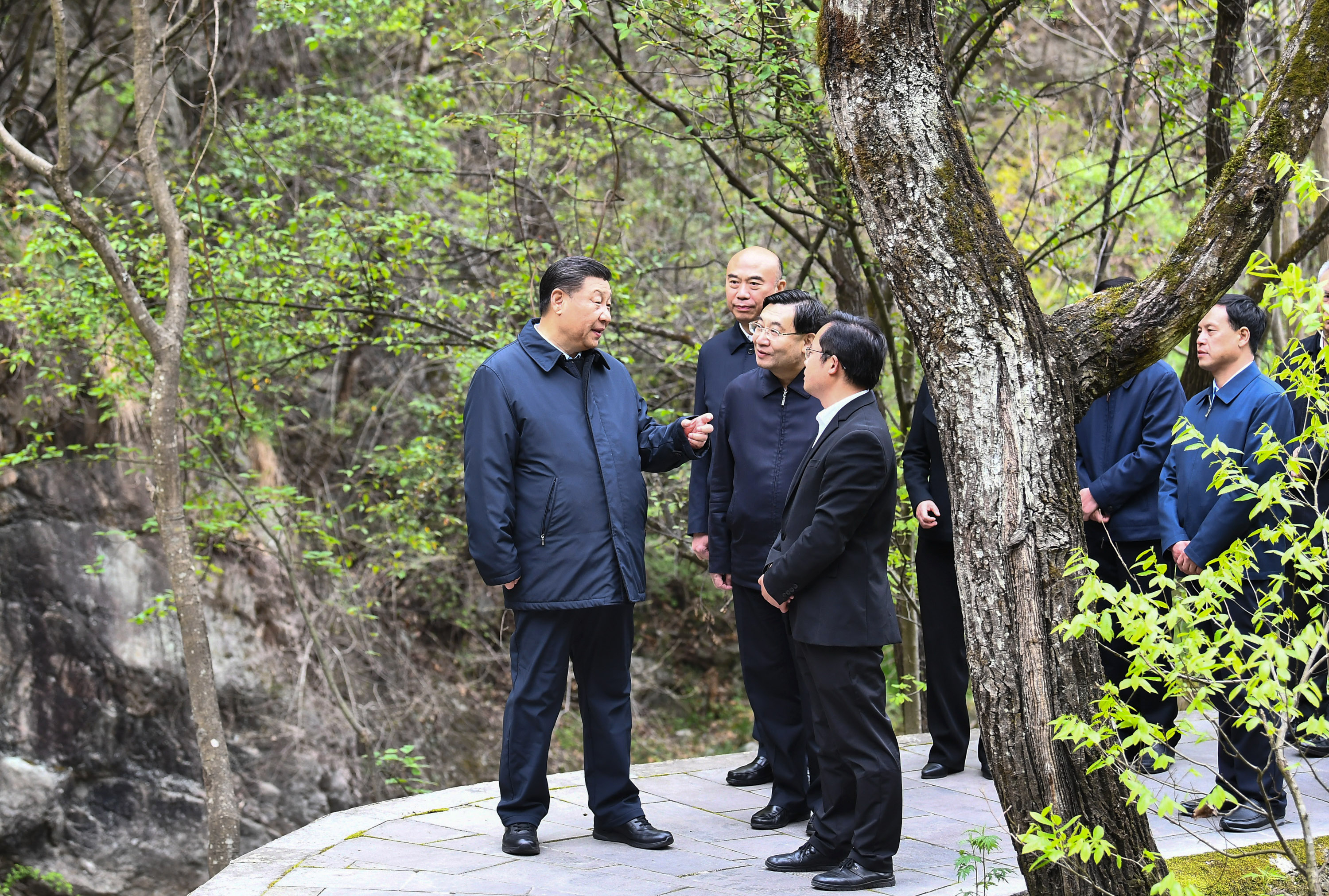 4月20日至23日,中共中央總書記、國家主席、中央軍委主席習近平在陜西考察。這是4月20日,習近平在位于秦嶺山脈東段的牛背梁國家級自然保護區羚牛谷,了解秦嶺生態環境保護情況。