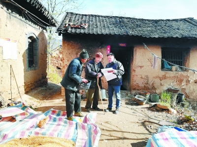 ④河南欒川縣重渡溝管委會北鄉(xiāng)村第一書記彭海(右一)在走訪貧困戶。(本版圖片均為光明圖片)
