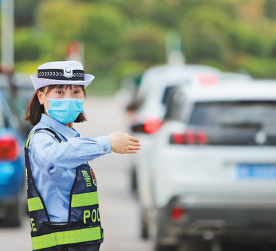 5月2日,貴州省丹寨萬達小鎮,青年交警堅守崗位、指揮交通。陸德華攝(影像中國)
