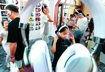 讀者在上海書展現場戴上耳機感受“聽書”。 新華社發