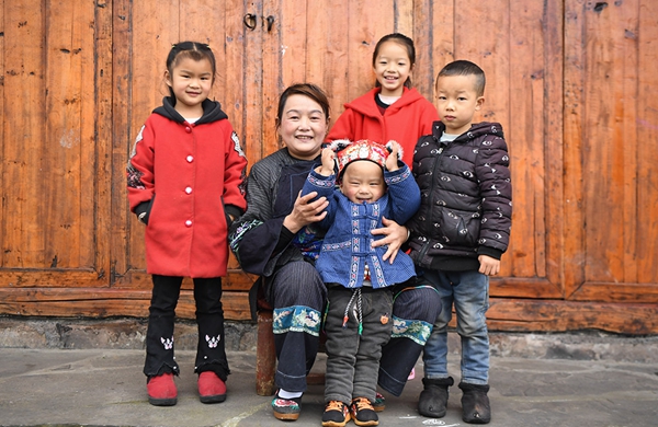 這是4月24日拍攝的吳美金(左二)和她孫子孫女的合影。1967年出生的吳美金,1992年嫁入飛蟲村(現(xiàn)十八洞村飛蟲寨)時,只有爛泥路的飛蟲村不僅田土少,掙錢活路也少,生活十分困難。2014年,吳美金加入了十八洞村苗繡特產(chǎn)農(nóng)民專業(yè)合作社,從小就會的苗繡傳統(tǒng)手藝如今成了家庭增收的法寶,不僅在家門口就把錢掙了,同時還能照顧年幼的孫子孫女。“現(xiàn)在的日子,比年輕的時候好多了。”吳美金說。新華社記者 薛宇舸 攝